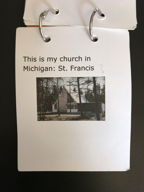 We looked everywhere, we thought. The memory wallet made for Jenny/Guppy could not be found. Today it was found! Made based on a book about how to help Alzheimer’s patients remember their life, loved ones, and things that are important. Becky and Janet worked on the contents and then Becky laid out and assembled the wallet. Here are images of the pages. It gives a wonderful view of her life, what was important to her, and family.