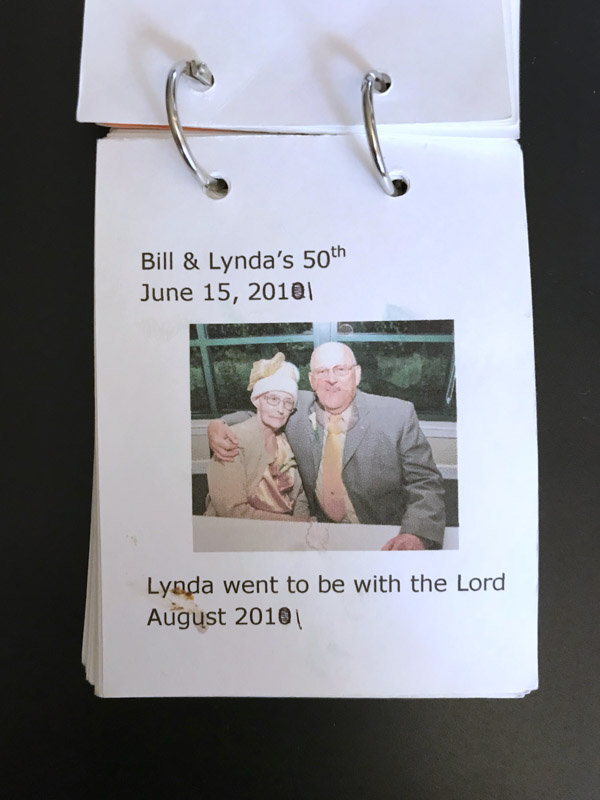 We looked everywhere, we thought. The memory wallet made for Jenny/Guppy could not be found. Today it was found! Made based on a book about how to help Alzheimer’s patients remember their life, loved ones, and things that are important. Becky and Janet worked on the contents and then Becky laid out and assembled the wallet. Here are images of the pages. It gives a wonderful view of her life, what was important to her, and family.