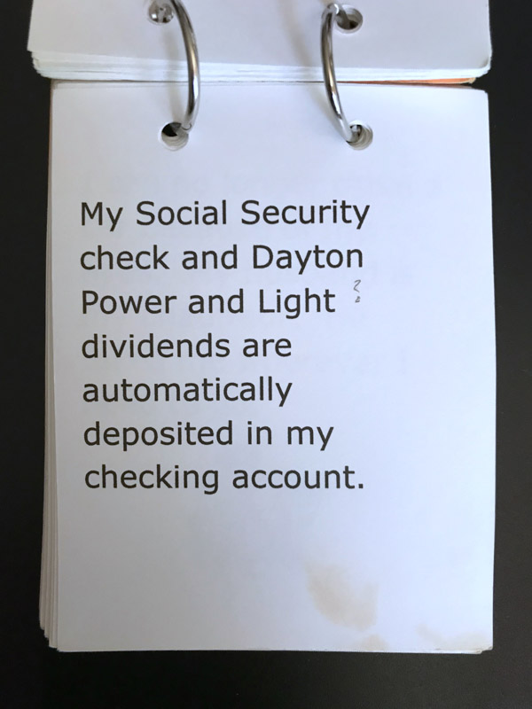 We looked everywhere, we thought. The memory wallet made for Jenny/Guppy could not be found. Today it was found! Made based on a book about how to help Alzheimer’s patients remember their life, loved ones, and things that are important. Becky and Janet worked on the contents and then Becky laid out and assembled the wallet. Here are images of the pages. It gives a wonderful view of her life, what was important to her, and family.